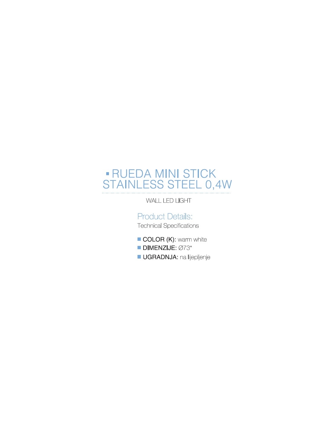 LED flat zidne RUEDA MINI STICK STAINLESS STEEL 0,4W 3000K, NADGRADNA (wall LED light)