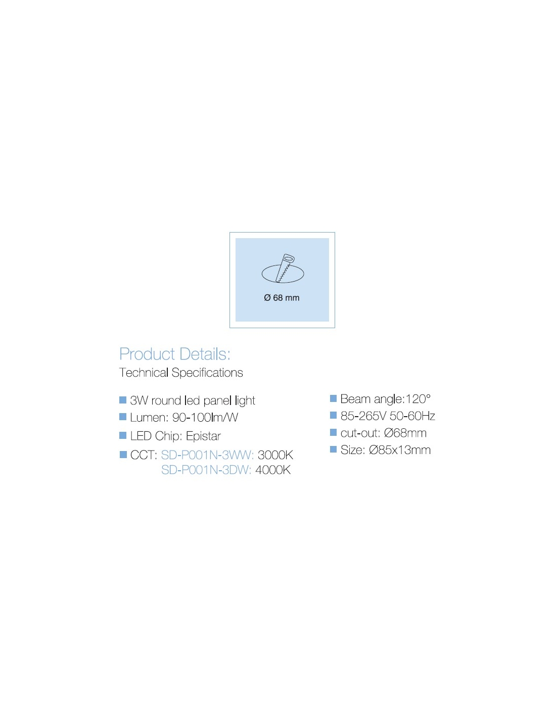 LED panel UGRADBENI okrugli SD P001N 3WW 3000K