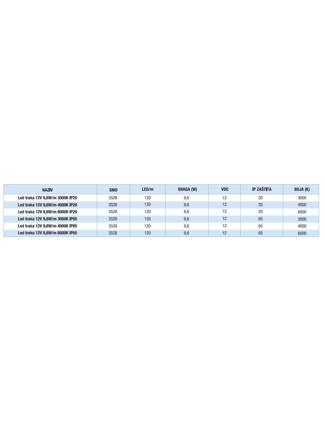 LED traka BIJELA 12V 9,6W/m IP65 3000K