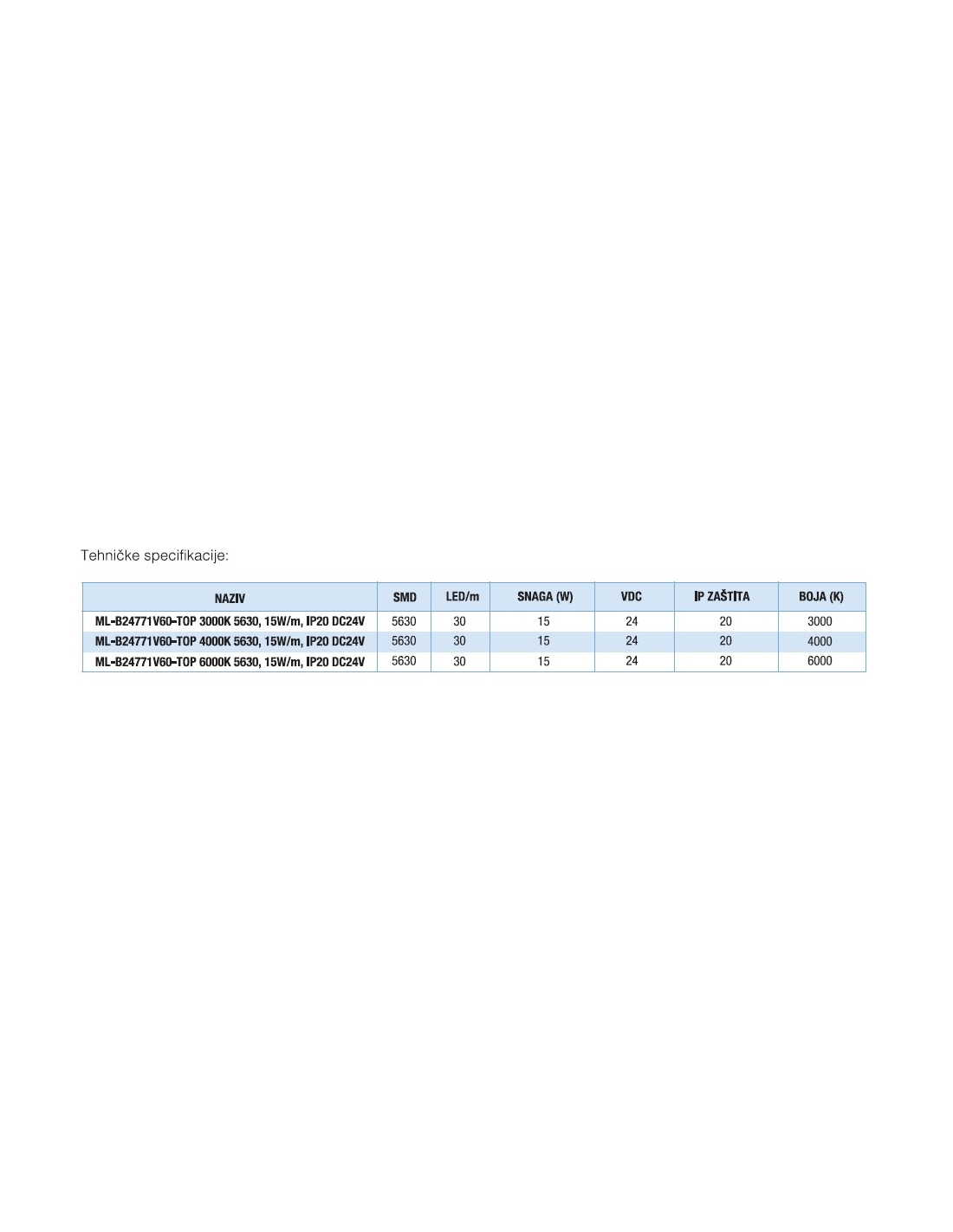 LED TRAKA ML B24771V60 TOP 4000K30xSMD5630, 15W/m, IP20 DC24V, WH PCB