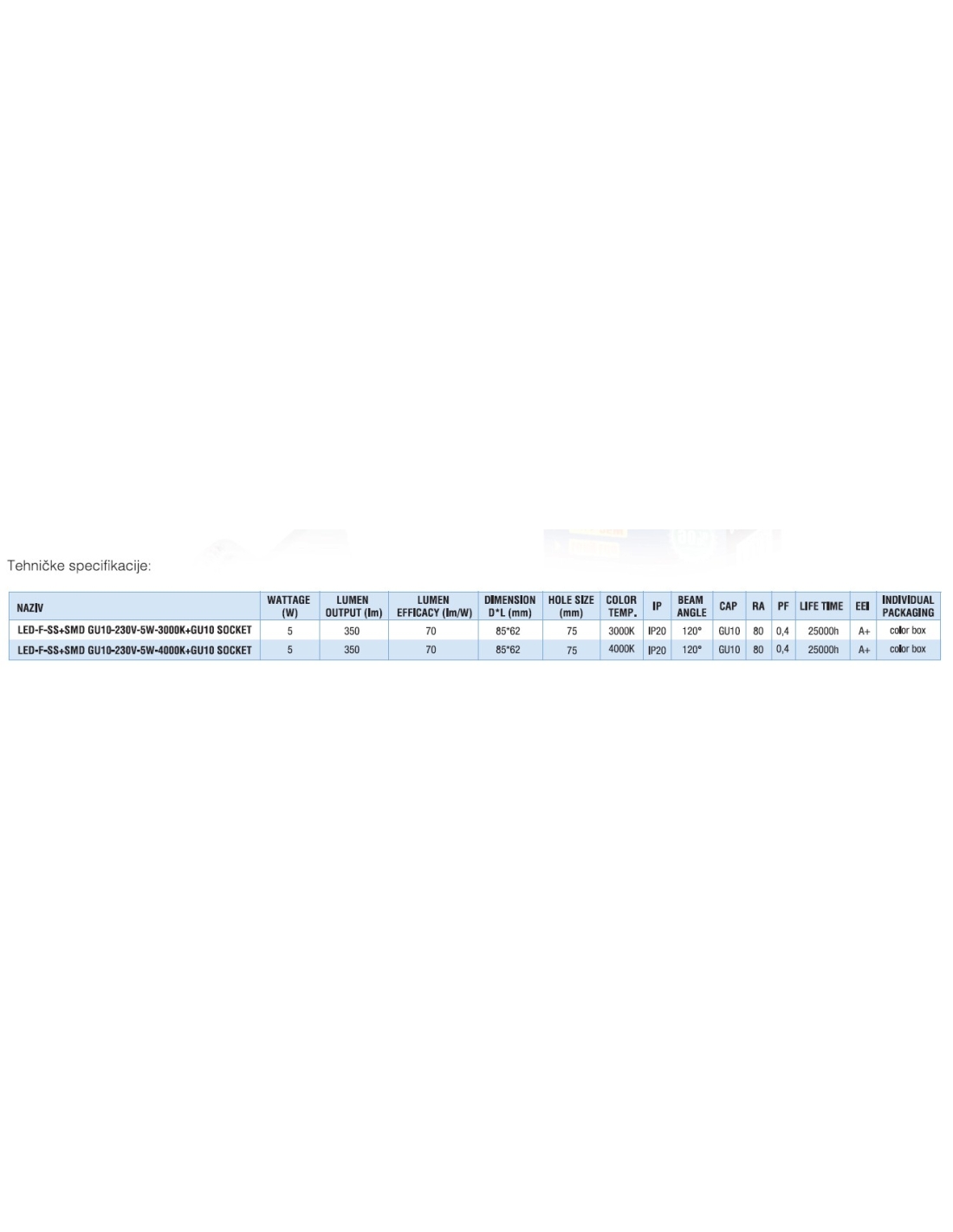LED F RS+SMD GU10 230V 5W 3000K