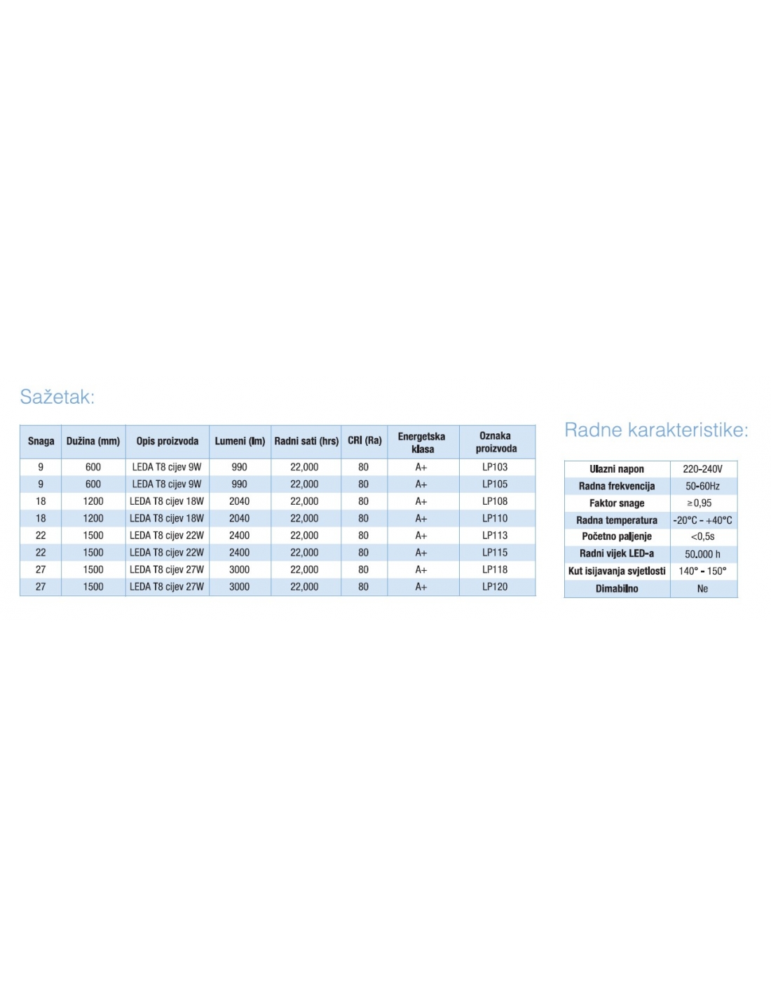 LED cijevi T8 TUBE su inovativni proizvod hrvatske proizvodnje koji će vaš dom ili poslovni prostor pretvoriti u oazu svjetlosti. Ove cijevi su izuzetno učinkovite i ekološki prihvatljive, a uz njihovu pomoć moći ćete uštedjeti i do 80% energije u usporedbi sa standardnim fluorescentnim cijevima.