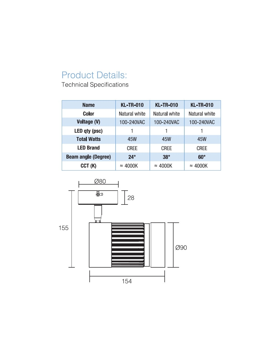LED zidne KL TR 010 4000K 24, 38 ili 60 stupnjeva (45W round shape tracking light celing install)