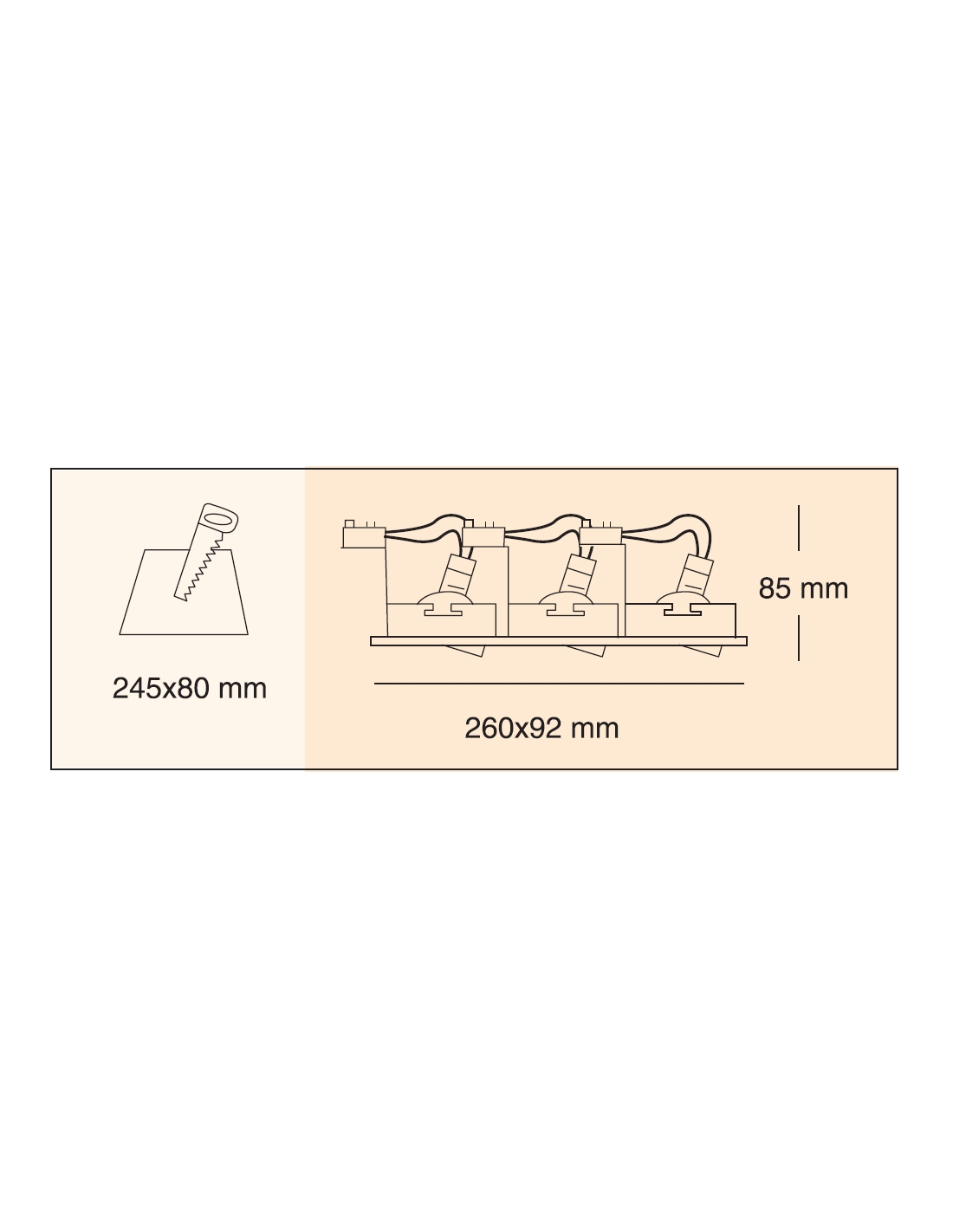 - 245x80mm / 260x92mm / 85mm